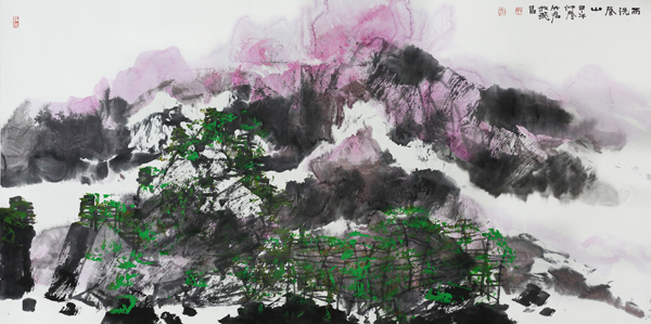 丁竹君 山水 雨洗春山