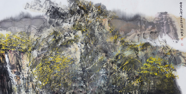 丁竹君 山水 云崖泉聲