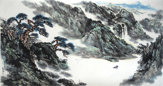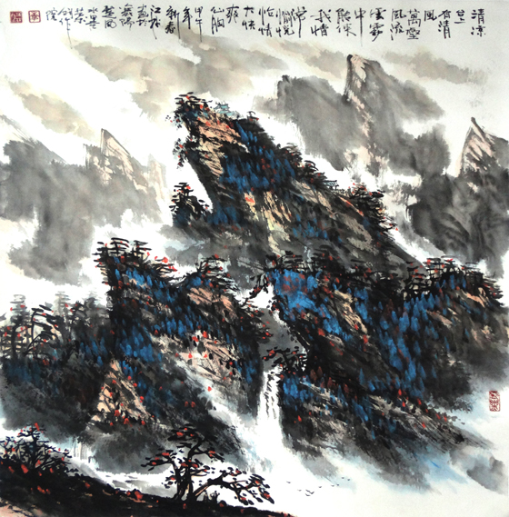 更為重要的是,在用墨與設(shè)色之間還相得益彰。作品不僅顯得空靈、超逸,還不乏生動(dòng)的氣韻與景致。