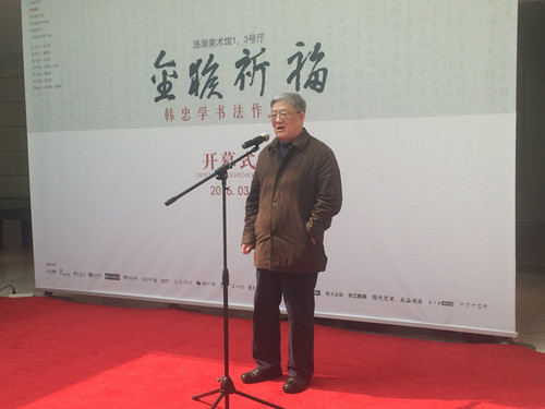 3月18日,由湖北省文學(xué)藝術(shù)界聯(lián)合會、湯湖美術(shù)館主辦,湖北省書法院、湖北省國學(xué)書畫院、湯湖美術(shù)館、《中國文藝家》雜志共同承辦的“金猴祈福——韓忠學(xué)書法作品展”在湯湖美術(shù)館隆重開幕。湖北省人大原副主任羅輝,武漢市人大原主任李巖,武漢市政協(xié)原主席劉善壁等老領(lǐng)導(dǎo)及在漢書法家、畫家、書畫愛好者共200余人出席開幕式,湖北省書法家協(xié)會副主席、湖北省書法院副院長葛昌永主持。湯湖美術(shù)館館長王心耀致辭,武漢市委常委、武漢經(jīng)濟技術(shù)開發(fā)區(qū)(漢南區(qū))工委書記朱毅,湖北省文聯(lián)黨組書記、常務(wù)副主席劉永澤先后講話,韓忠學(xué)致答謝詞。