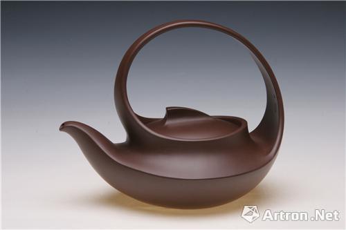 汪寅仙深知做這款壺最大的技術(shù)難度在于造型的確立。“我和張教授反復(fù)討論、斟酌,終于從蝸牛殼的線條中得到靈感,尋找到了貫穿于造型結(jié)構(gòu)的主線——蝸牛殼式螺旋線。從壺口開始,連接提梁,轉(zhuǎn)至腹部,并通過腹部延伸到壺嘴的主線全部由一個(gè)線條完成,毫無停滯和斷點(diǎn)。根據(jù)這一設(shè)想,我們首先確立了造型。”汪寅仙自己評(píng)價(jià)說:“《曲壺》的創(chuàng)作打破了傳統(tǒng)壺藝的范式,是一次非常大膽的實(shí)驗(yàn)!肚鷫亍酚絮r明的時(shí)代性,代表了一種對(duì)現(xiàn)代美學(xué)的追求。”