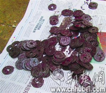 新洲區(qū)文物管理所所長(zhǎng)潘敦貴,在發(fā)掘現(xiàn)場(chǎng)負(fù)責(zé)文物保管登記,潘敦貴所長(zhǎng)告訴記者,上午8時(shí)許,出土2個(gè)釉罐,一個(gè)破損嚴(yán)重,另一個(gè)罐肚有裂縫; 接著出土了3枚銅錢、一個(gè)銀勺、直徑10多厘米的瓷器碟子等器物;下午1時(shí)30分許,挖掘機(jī)將石室內(nèi)的棺木吊出,考古人員繼續(xù)在石室淤泥內(nèi)探到一對(duì)青銅 鏡,接著又發(fā)現(xiàn)斧頭;下午4時(shí)許,發(fā)現(xiàn)石室內(nèi)有大量銅錢,初步估計(jì)有200多枚銅錢。