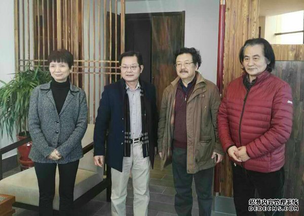 ▲ 襄陽畫院院長(zhǎng)鞠太運(yùn)、湖北美術(shù)院院長(zhǎng)董繼寧、襄陽美協(xié)名譽(yù)主席邊廣蘭等合影